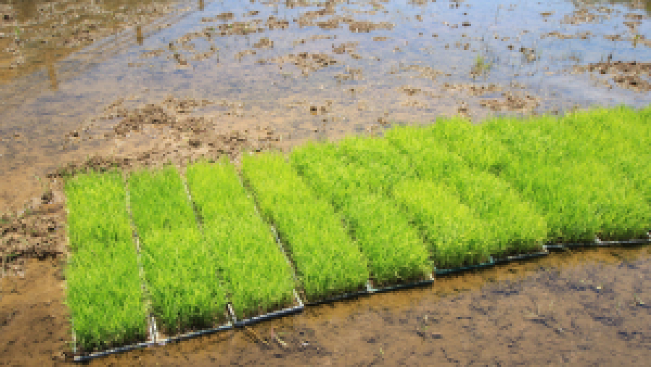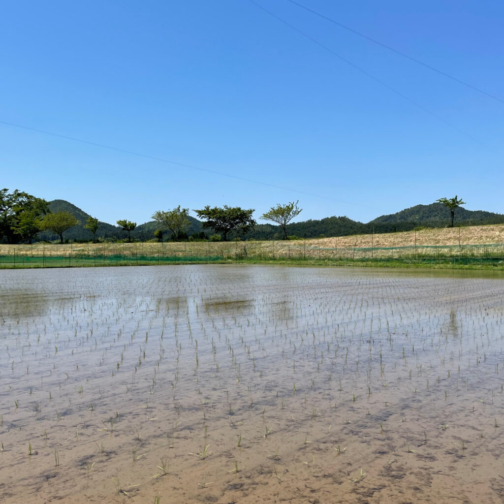 田んぼをやわらかく耕し、空気をめいっぱい土に取り込む。空気に触れた微生物たちが元気を取り戻す。苗を受け入れ、育むための養分を土に蓄える。