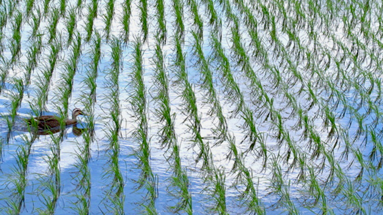 稲や天候の状態に合わせて、田んぼの水量を細かく調節する。アイガモたちと協力し、害虫や雑草の駆除を行い、外敵から徹底的に稲を守る。