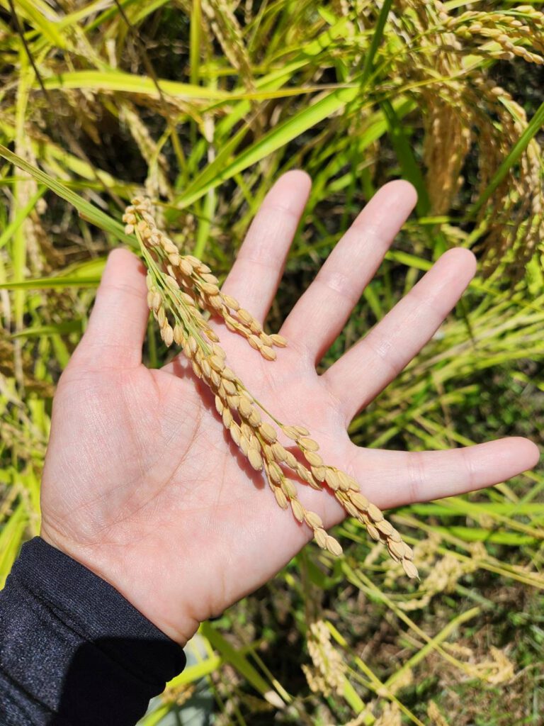 こがね色にずっしりと育ったお米をいよいよ収穫。 京都・北京の自然の恵みをとことんまで吸収し、栄養とやさしさがたっぷりと詰まっている。